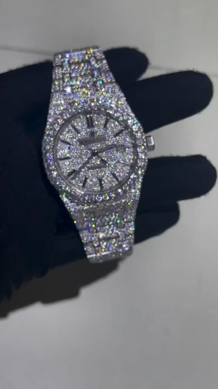 Este reloj diamantado con Moissanita VVS1 no solo destaca por su belleza y elegancia, sino también por su capacidad de pasar el Test Diamonds, un método utilizado para verificar la autenticidad de piedras preciosas.