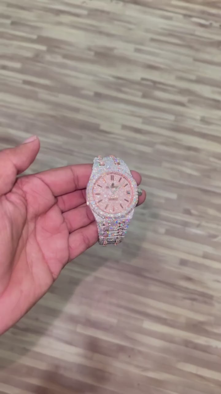 Este reloj diamantado con Moissanita VVS1 no solo destaca por su belleza y elegancia, sino también por su capacidad de pasar el Test Diamonds, un método utilizado para verificar la autenticidad de piedras preciosas.
